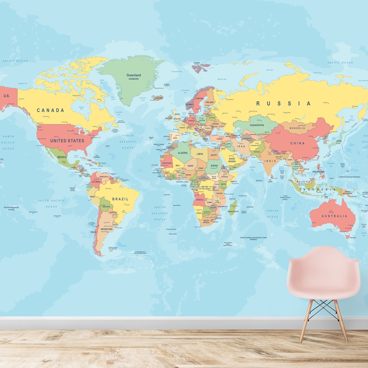 ROLLING LARGE WALL MOUNT MAP OF WORLD POLITICAL (PIPE MOUNTED